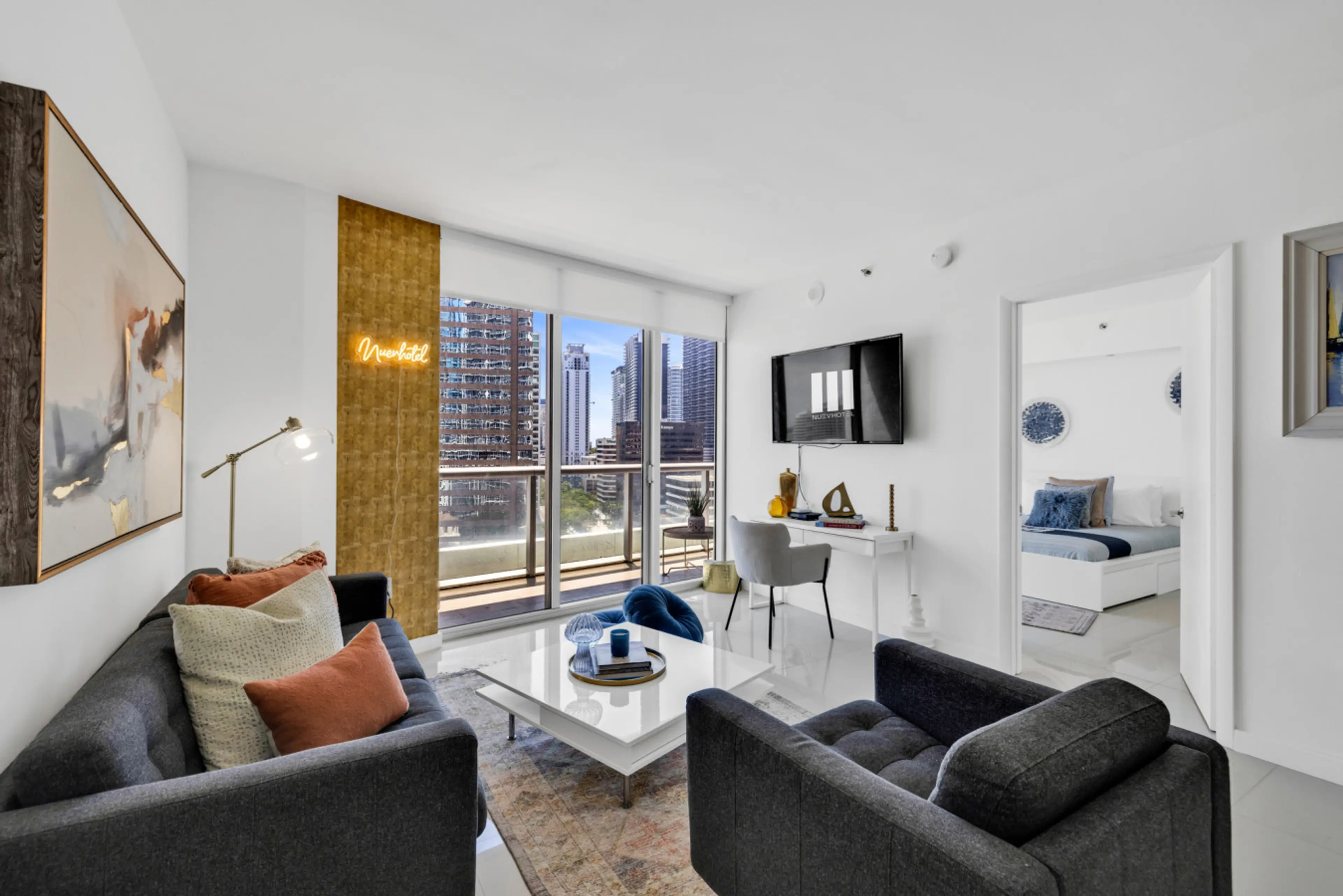 Experience Miami luxury at its peak! This breathtaking condo in the heart of the city boasts a large balcony with panoramic views of Biscayne Bay. Enjoy W Hotel amenities, featuring the largest waterfront pool deck, Olympic-size pools, a Jacuzzi, a state-of-the-art gym, a 5000 sqft spa, and four res...